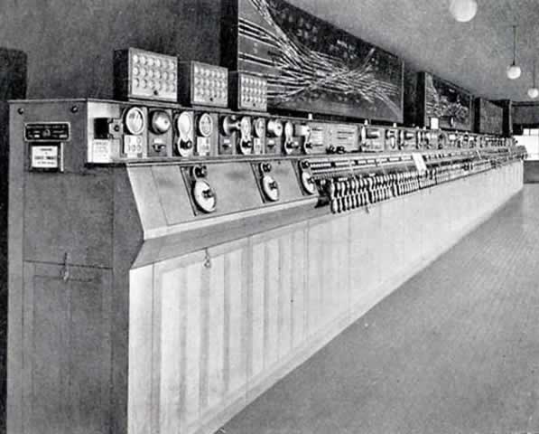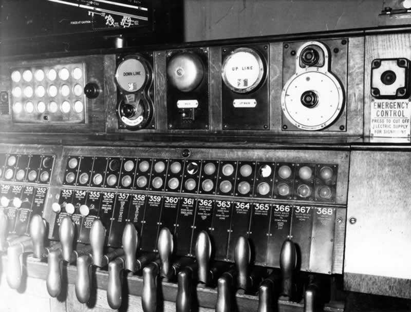 Beneath the single row of correspondence lights is a row of "lock free" lights indicating when a lever is free to he pulled.